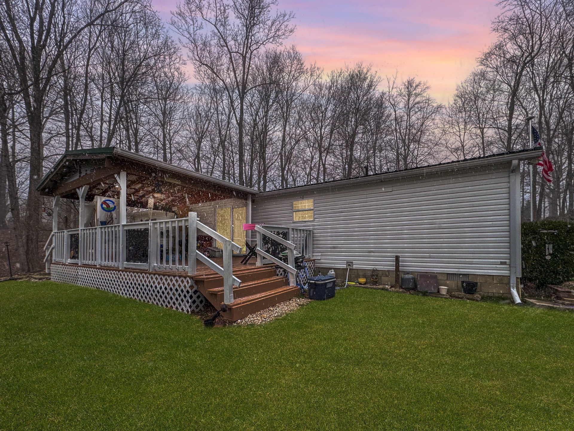Nestled at the end of a quiet lane on 2 private acres, this well-maintained home offers the perfect blend of comfort, functionality, and peaceful country living. Inside, you'll find new flooring throughout the main living areas and a spacious layout designed for everyday ease. The kitchen has been refreshed with all new appliances, and the washer and dryer are included, making this home truly move-in ready. The home features two updated, ADA-compliant walk-in showers, providing both accessibility and modern convenience. A new furnace installed in 2025 adds peace of mind for years to come. Step outside to enjoy the resurfaced deck, perfect for relaxing or entertaining while overlooking your private acreage. The property also includes five outbuildings, offering exceptional storage and versatility. The standout brown building (36' x 12' is fully heated and cooled and includes a 6' covered porch, making it ideal for a workshop, hobby space, or additional flex use. A swing set is also included. If you're looking for space, privacy, and practical updates-all in a serene setting-this property checks all the boxes.