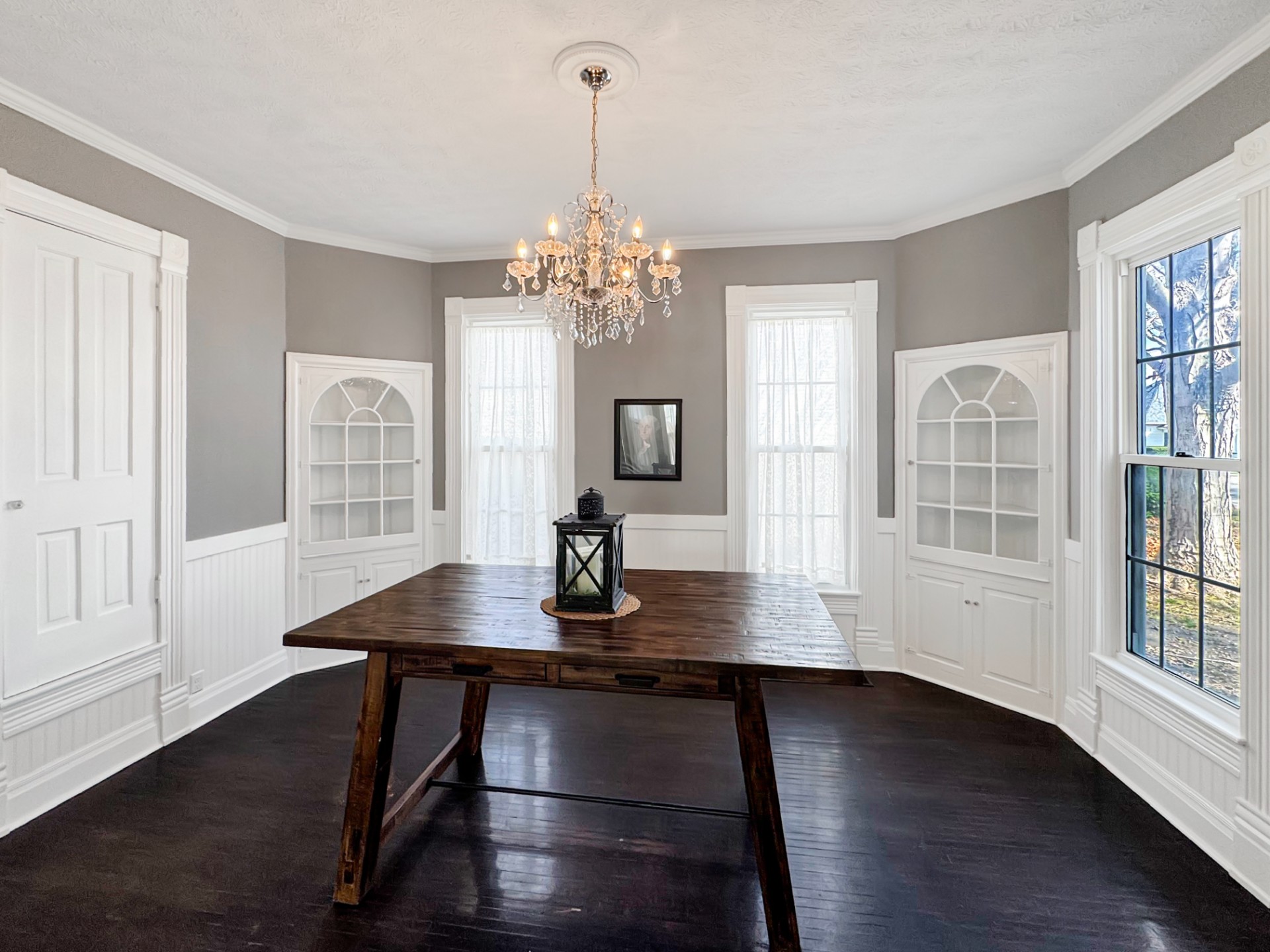 This charming home blends classic character with modern upgrades, featuring a beautifully remodeled kitchen complete with granite countertops, new lower cabinets, a unique copper ceiling and backsplash, and a farmhouse sink. The spacious layout offers multiple living areas, including a living room, sitting room, dining room, and a bright sunroom that can easily be converted into a home office or a main-level master suite. Soaring 12-foot ceilings on the main level and 8-foot ceilings upstairs create an open, airy atmosphere throughout. Additional highlights include a convenient walk-in shower, hardwood floors (also under carpeted areas, a cozy fireplace, and thoughtful accessibility options like a stairway chair lift, which can remain if desired. Outside, you'll find a detached one-car garage, a carport, and a mini barn, offering ample space for storage or hobbies. This home is full of potential and ready to welcome its next owner.