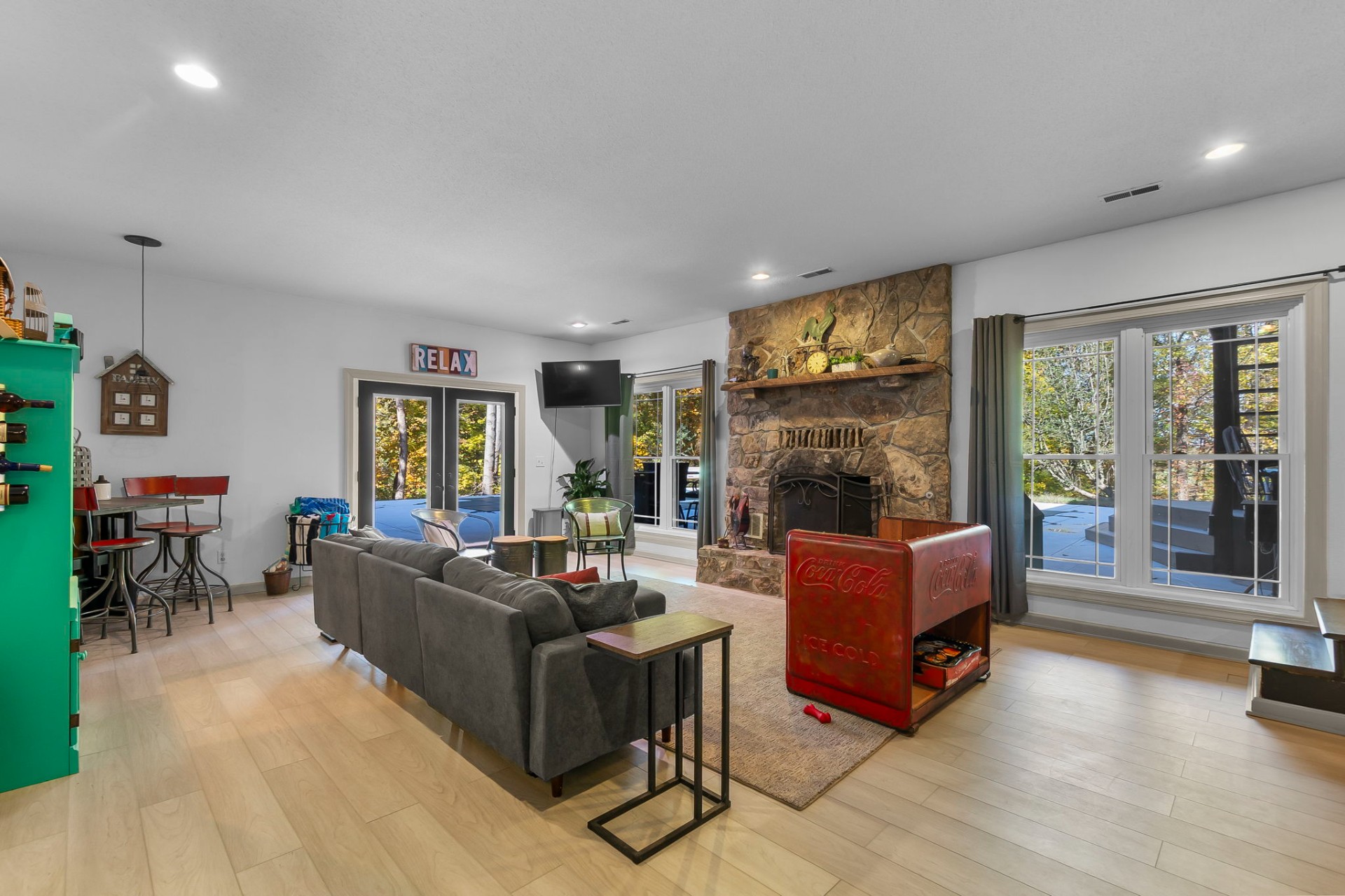 3.5-acre wooded lot • Inground pool • Detached garage with workshop • Main-level living • Birch hardwood floors Set on 3.5 wooded acres in a quiet Benton neighborhood, this 1.5-story home offers the ideal mix of space, privacy, and modern comfort. Inside, the main level features an open, functional layout designed for everyday living as well as entertaining. The large living room flows seamlessly into the dining area and kitchen, where granite countertops, a walk-in pantry, and a huge island create a true gathering space. Birch hardwood floors extend throughout the main level, adding warmth and timeless style, while high ceilings enhance the home’s spacious feel. This home includes 5 bedrooms and 5 full bathrooms, providing flexibility for guests, offices, or multigenerational living. The primary suite is located on the main level for convenience. Also on the main floor is a super cool man cave—an ideal spot for watching the game, relaxing, or hosting friends. The finished lower level expands the home’s versatility with an additional living room, bedrooms, bathroom, storage space, a dog bathing station, and a small kitchen area. This level walks out directly to the pool deck, creating a seamless indoor-outdoor connection ideal for entertaining or extended stays. Step outside to enjoy your private backyard retreat with an inground pool, concrete patio, and wooded backdrop for added privacy. A two-car attached garage provides everyday convenience, while a detached garage adds extra space for storage, a workshop, or hobby use. Located just minutes from Benton’s center and Interstate 55, this property combines country privacy with neighborhood ease. Experience open living spaces, outdoor enjoyment, and a versatile floor plan—all in one exceptional 3.5-acre setting. Listed at $849,000.