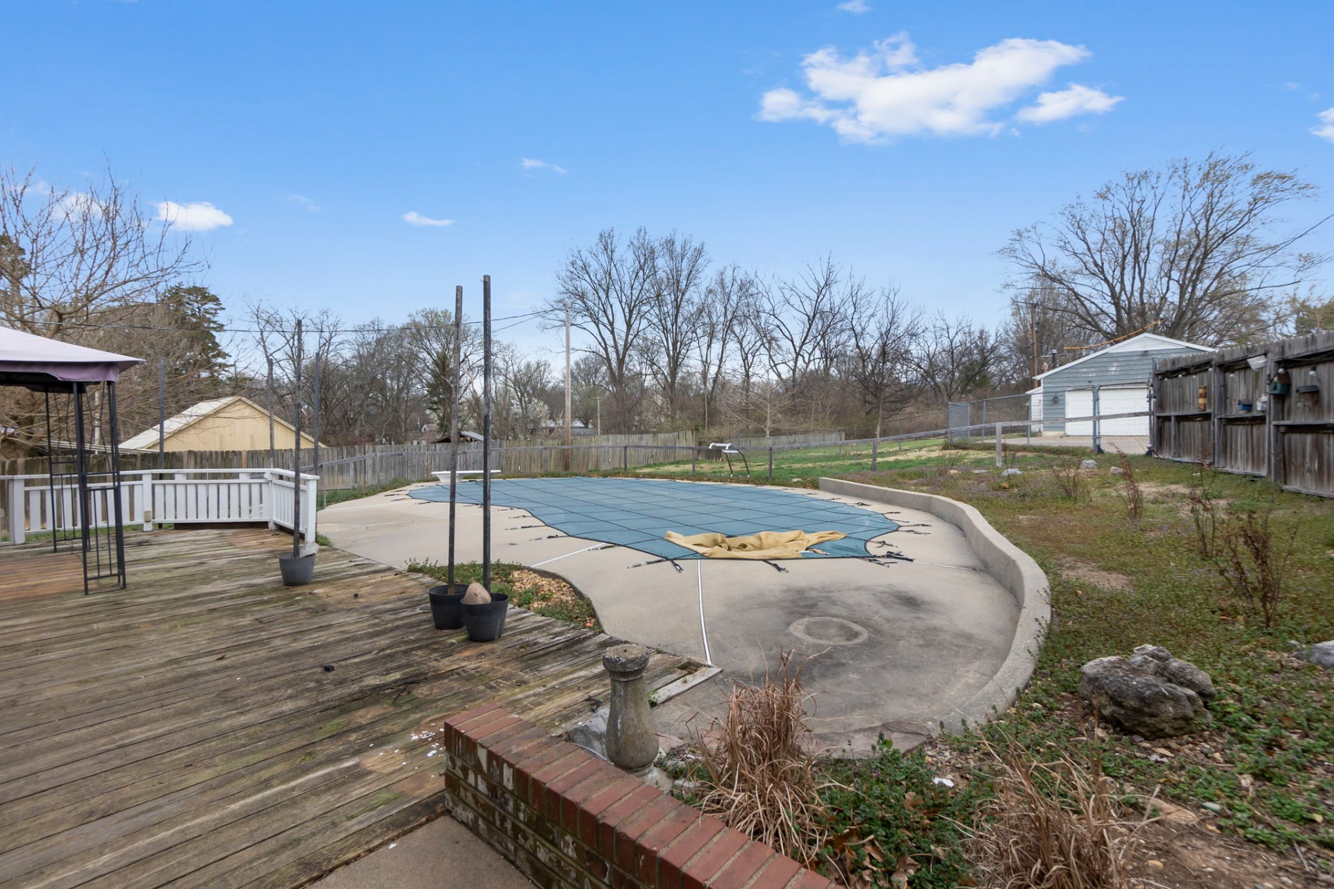 This 4 bed, 3.5 bath home sits on over half an acre in the heart of town! Features include a fenced-in yard, custom kidney-shaped in-ground pool, and a detached 1,500+ sq ft garage/shop-perfect for projects or storage. The primary bedroom has a private balcony, adding extra charm. While it needs work, the size, location and unique features make it a great investment. Whether you're looking for a fix-and-flip, rental, or a home to make your own, this one has endless potential! Sold AS-IS. Bring your vision and make this one shine!