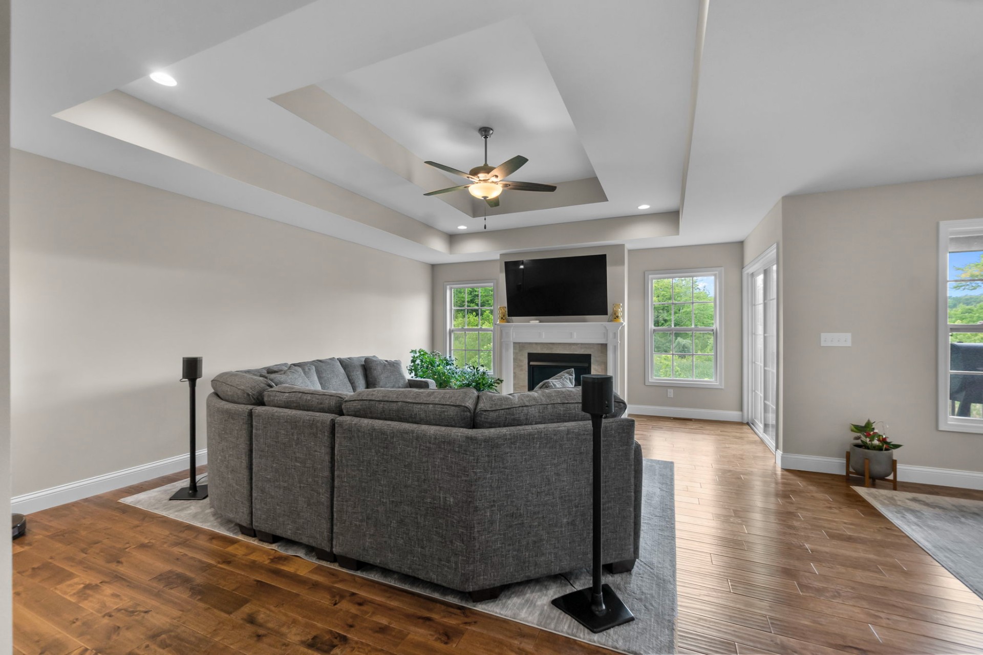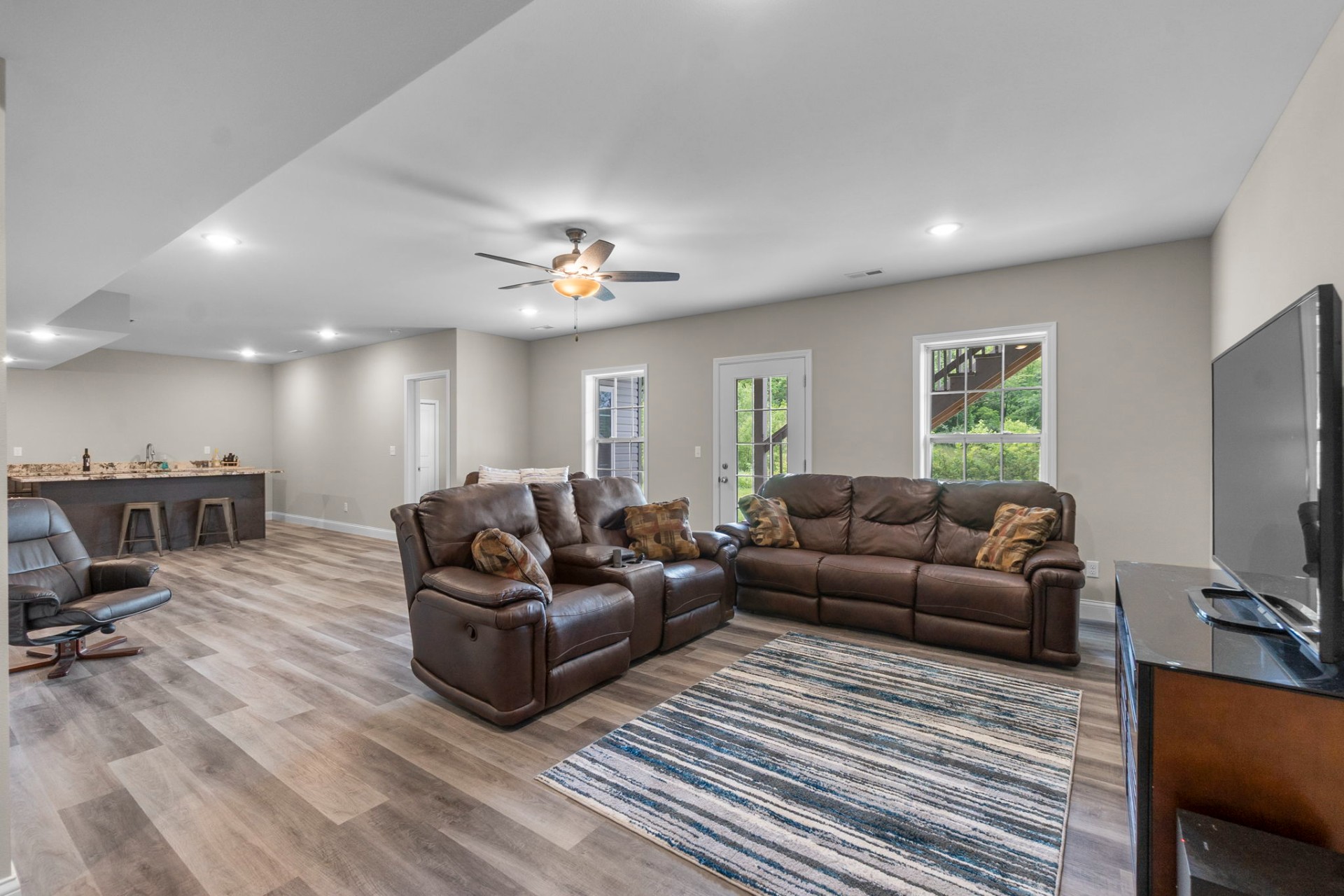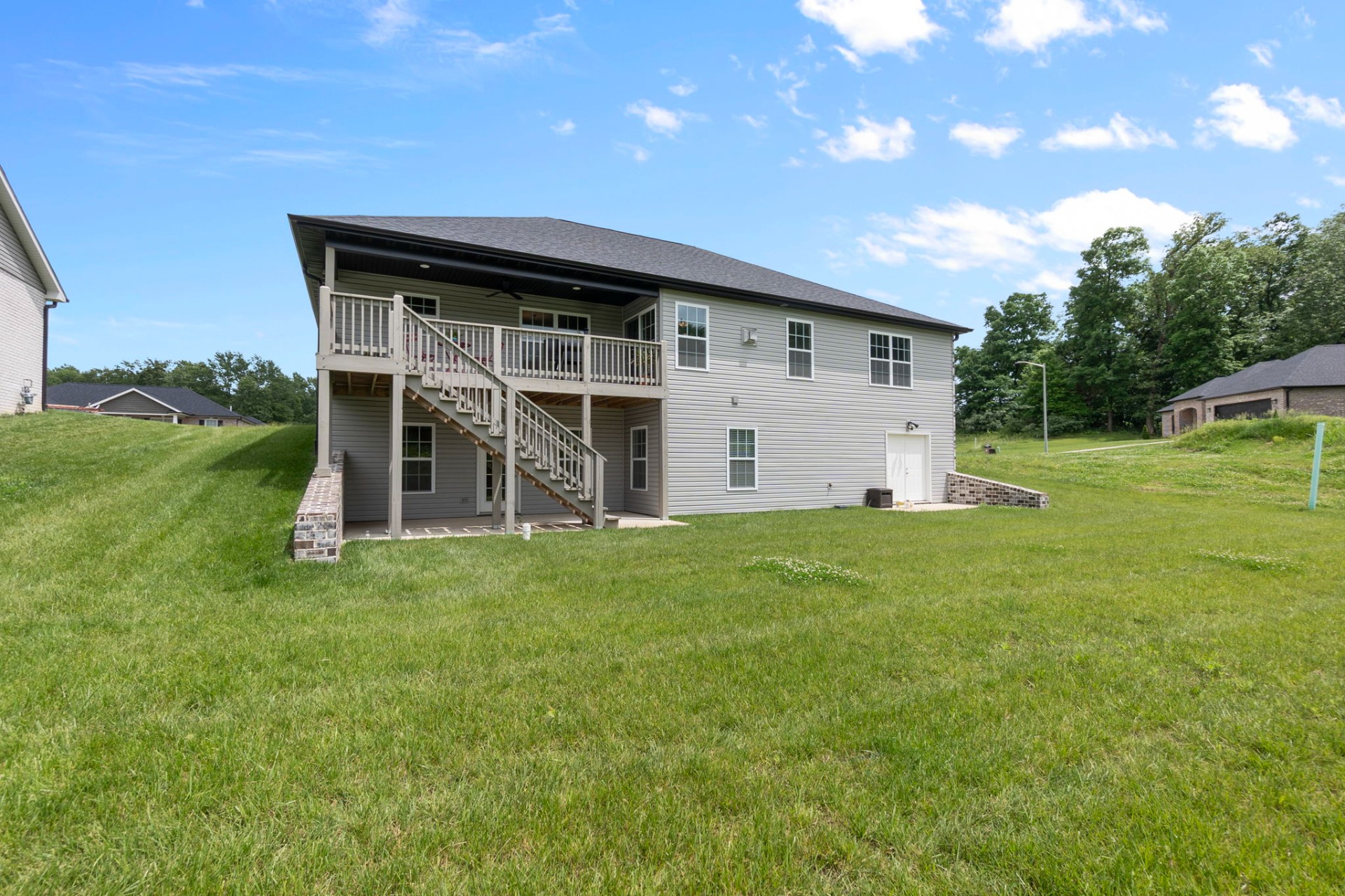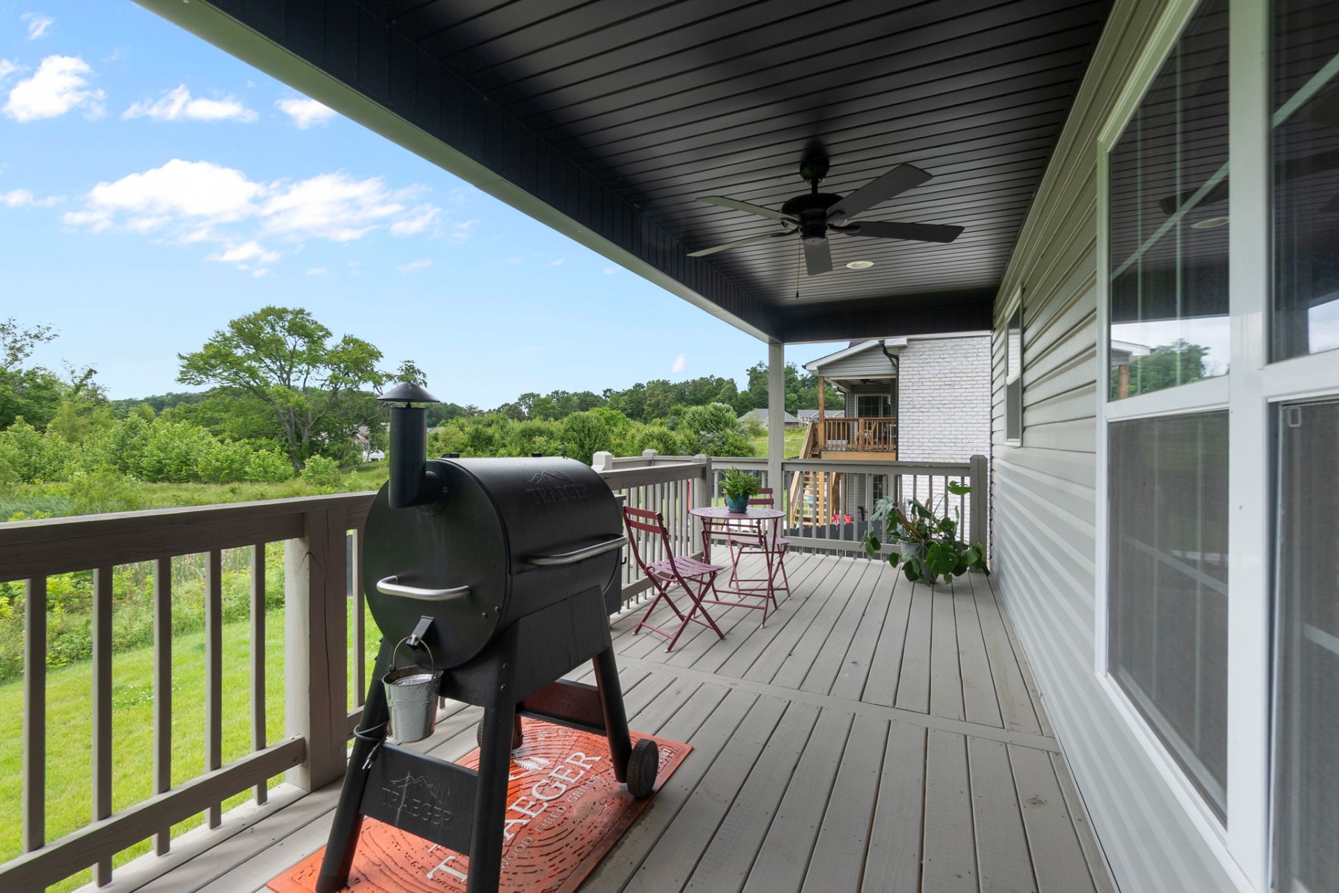 This newer construction home has so much to offer. A beautiful open concept, a cozy fireplace, a covered back deck that overlooks a small community pond, a lower patio that walks into the family room and a bonus John Deere room for all your lawn care equipment, bicycles and toys. Also on the lower level you will find a 4th bedroom, a full bath, a beautiful custom bar and lots of storage space. On the main level we have laundry, a primary ensuite that includes a spacious bedroom, a separate walk-in shower and tub, double sinks, and a walk-in closet. This 4 bed 3 full bath home is perfect for main level living and/or will accommodate a growing family. Situated on a cul de sac in a quiet well established neighborhood, we think you are going to LOVE this home.