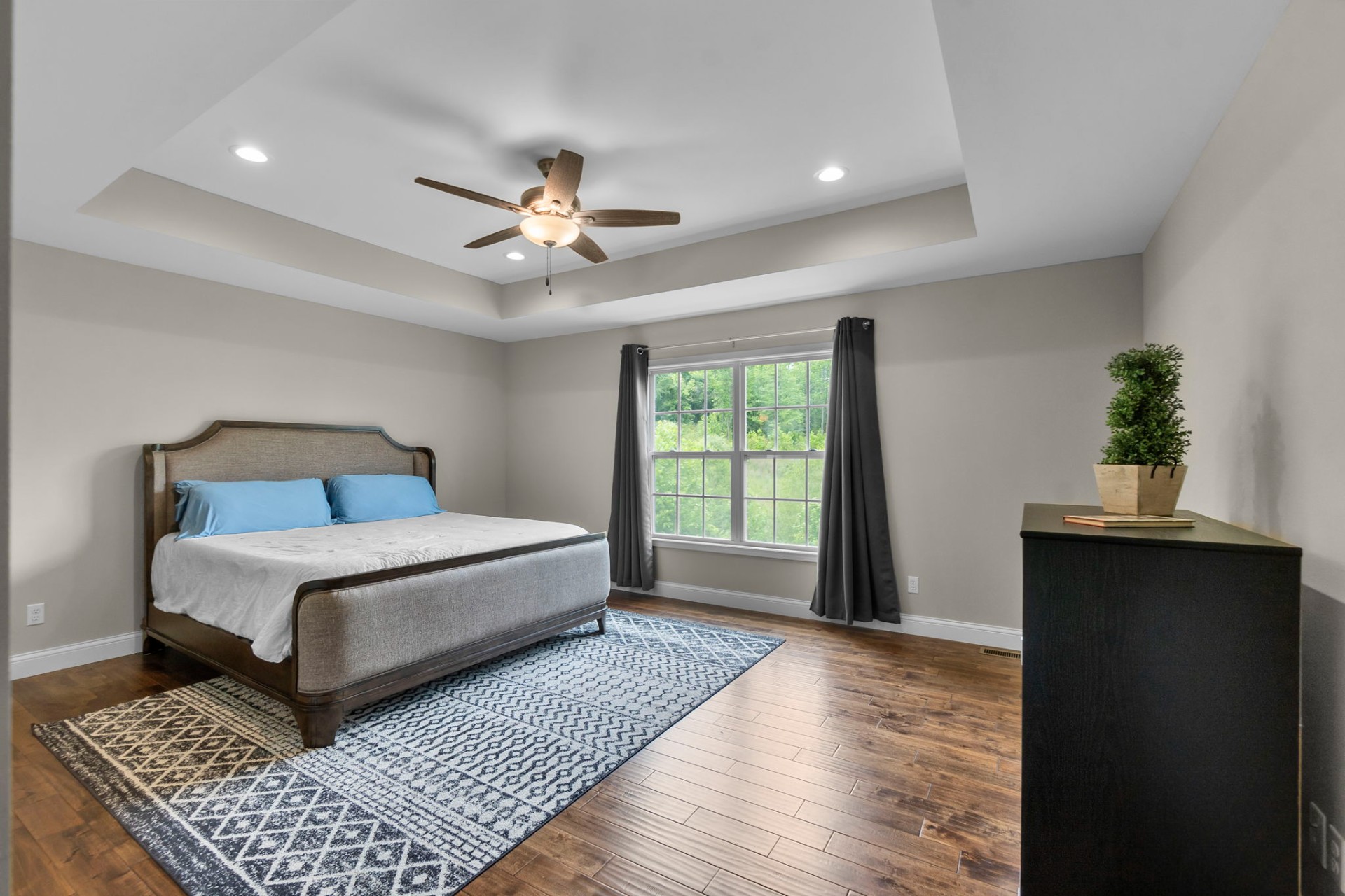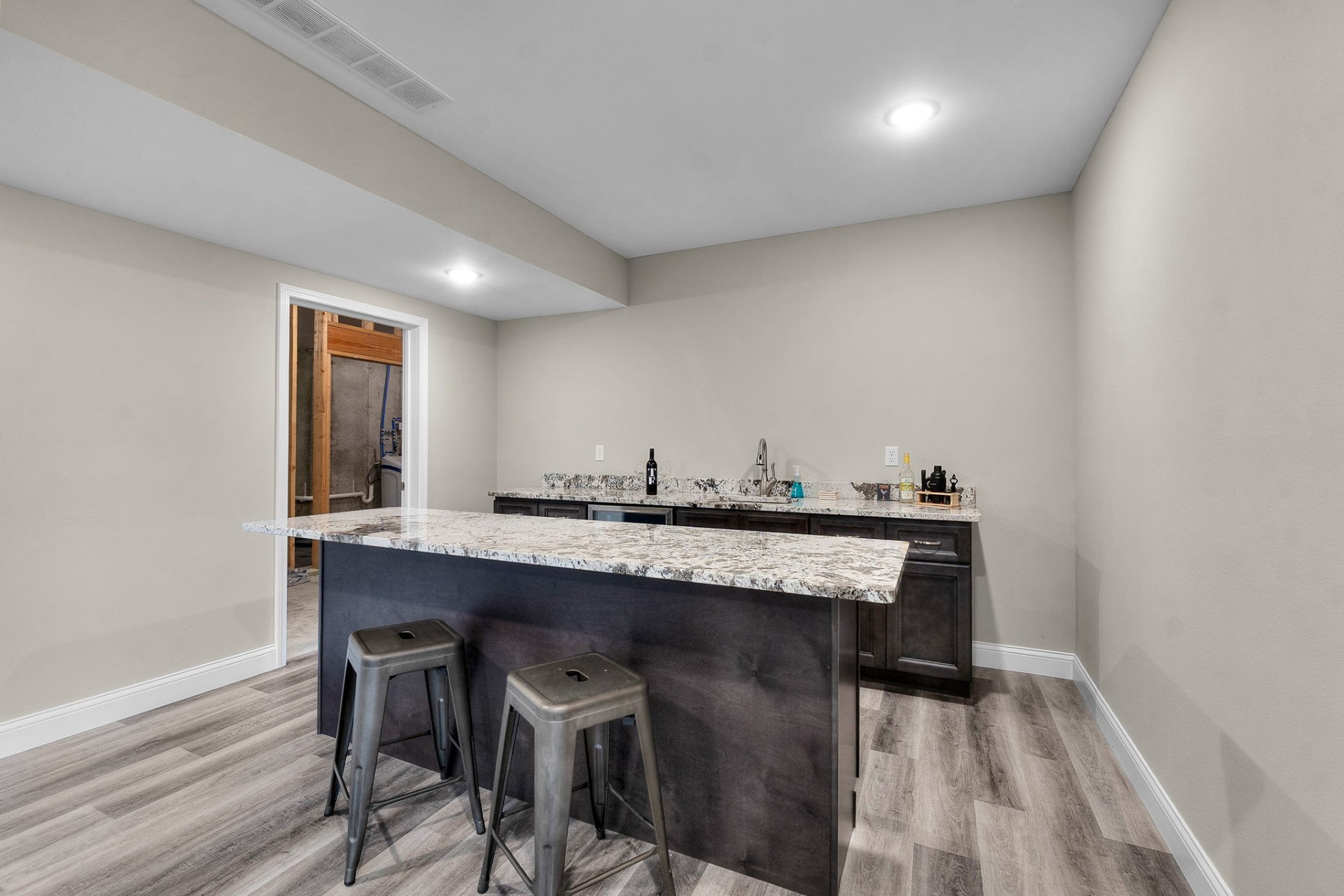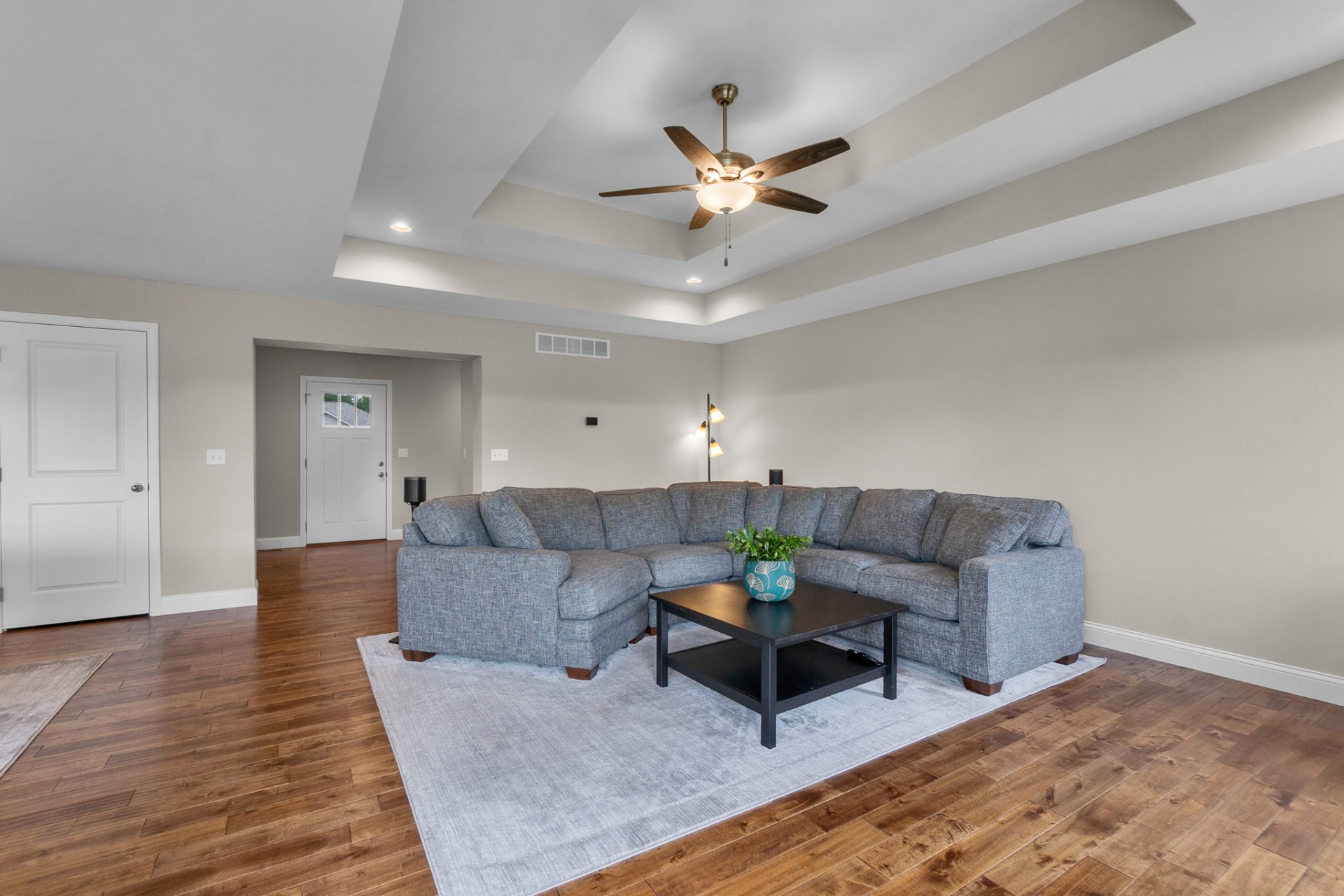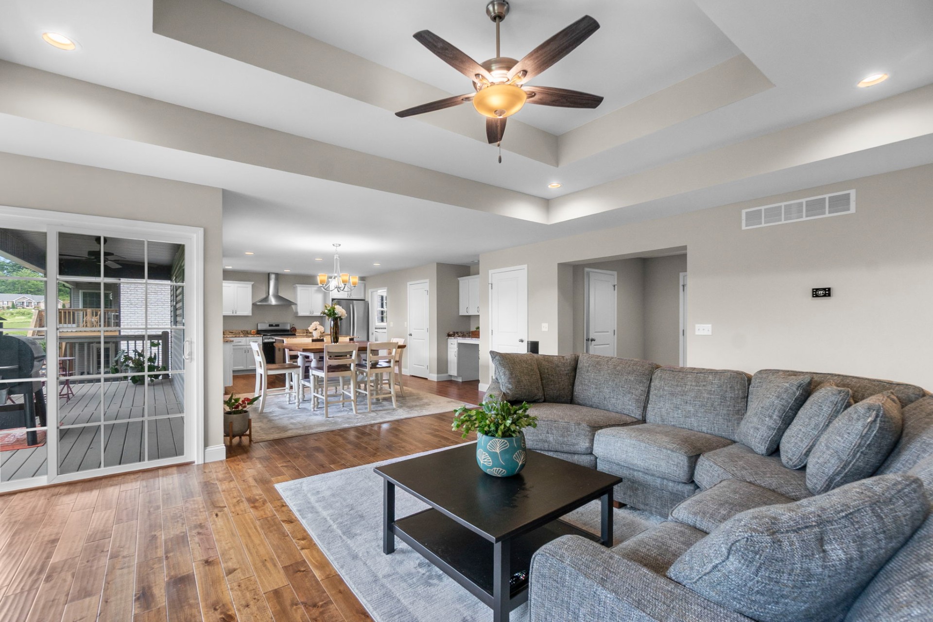 This newer construction home has so much to offer. A beautiful open concept, a cozy fireplace, a covered back deck that overlooks a small community pond, a lower patio that walks into the family room and a bonus John Deere room for all your lawn care equipment, bicycles and toys. Also on the lower level you will find a 4th bedroom, a full bath, a beautiful custom bar and lots of storage space. On the main level we have laundry, a primary ensuite that includes a spacious bedroom, a separate walk-in shower and tub, double sinks, and a walk-in closet. This 4 bed 3 full bath home is perfect for main level living and/or will accommodate a growing family. Situated on a cul de sac in a quiet well established neighborhood, we think you are going to LOVE this home.