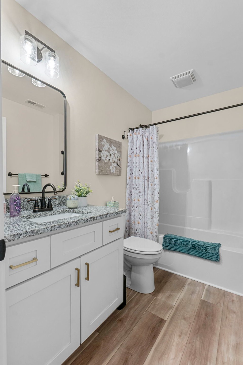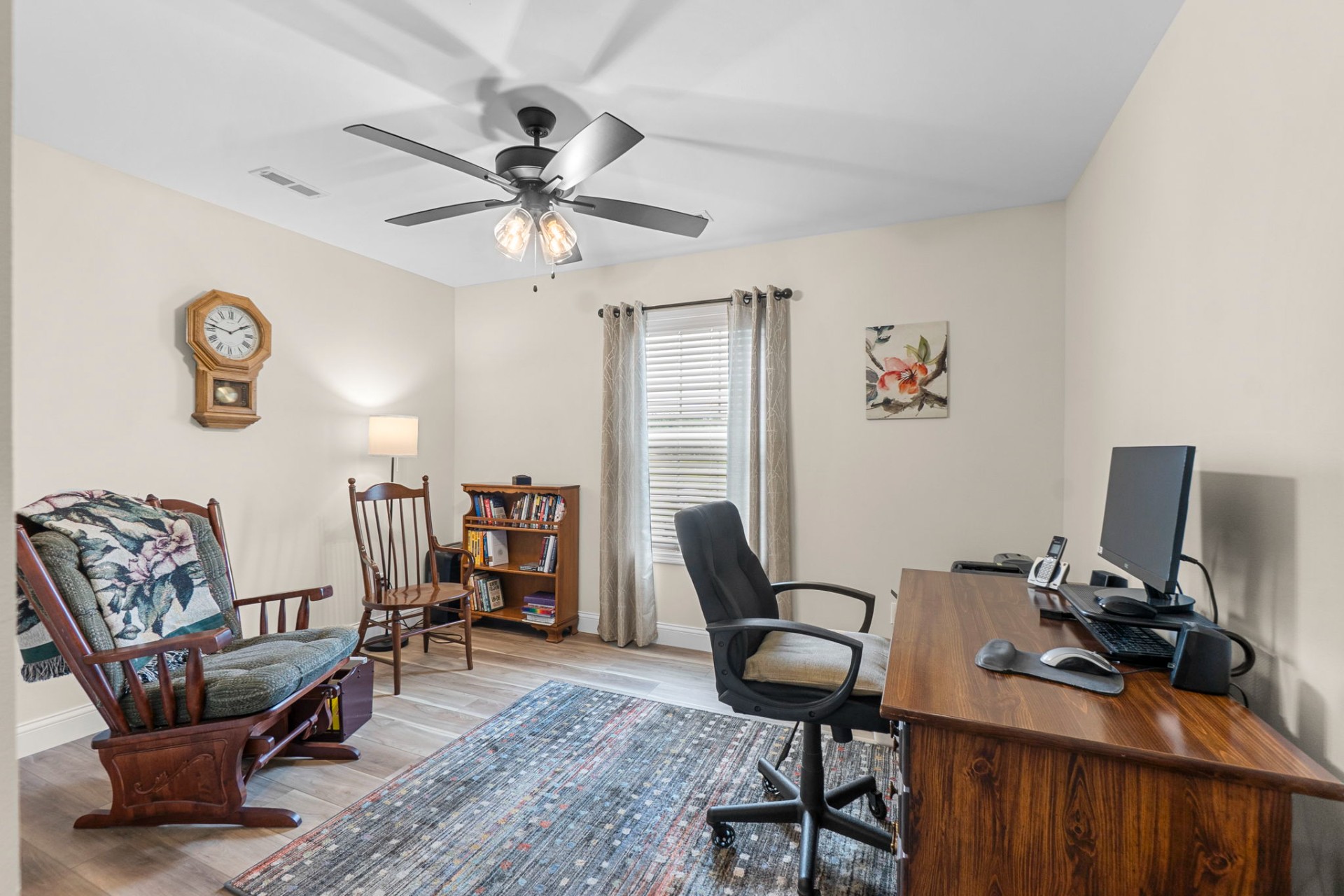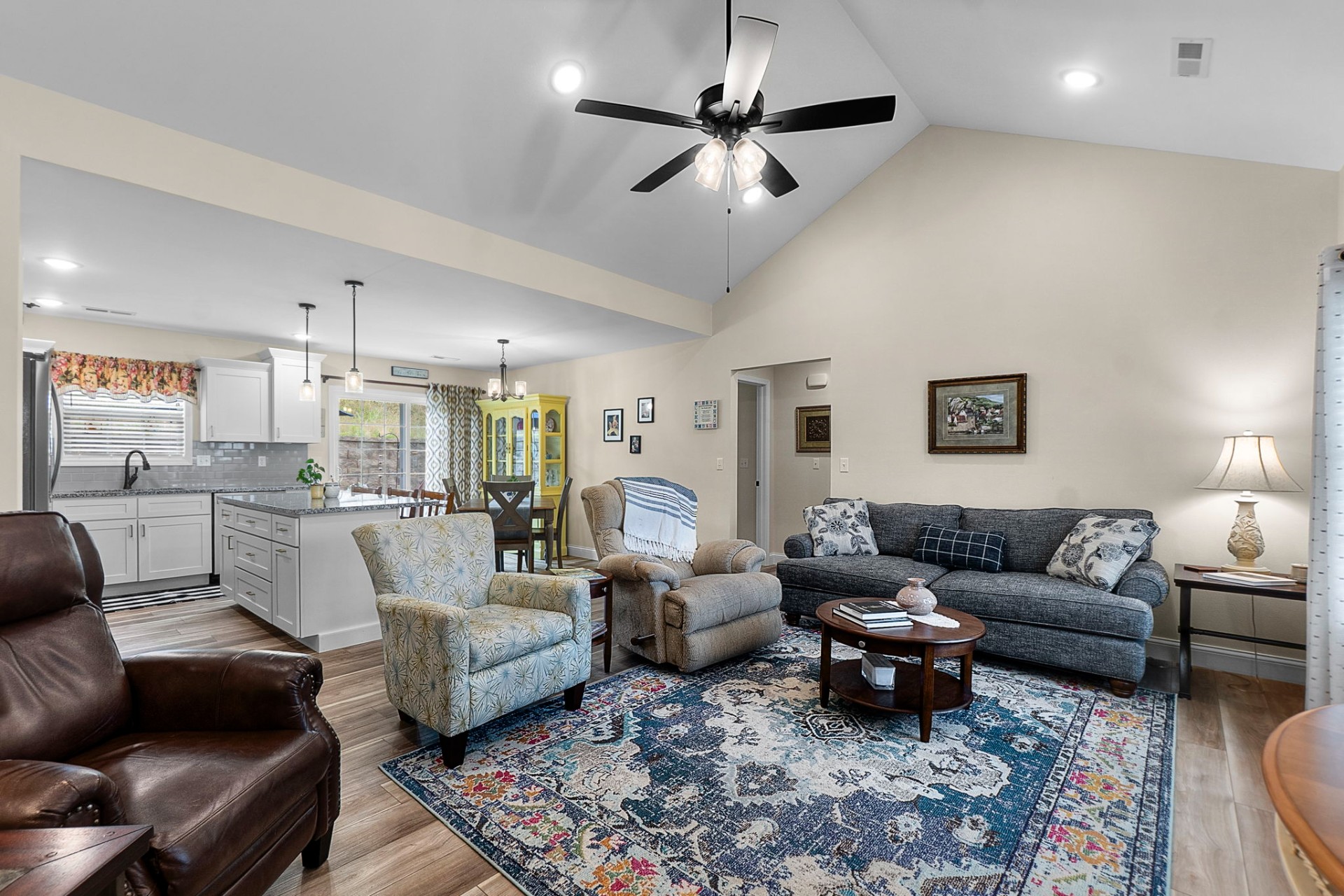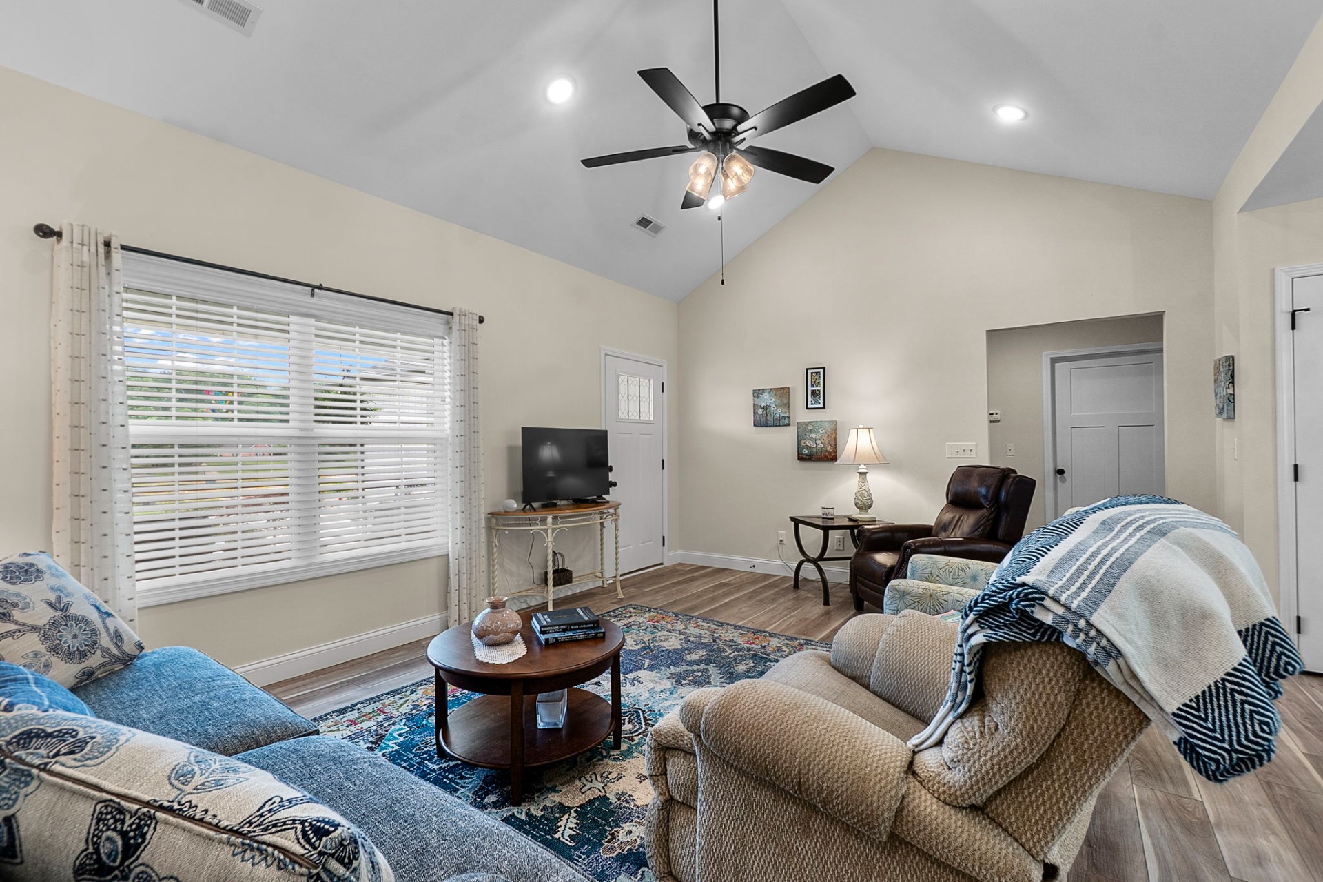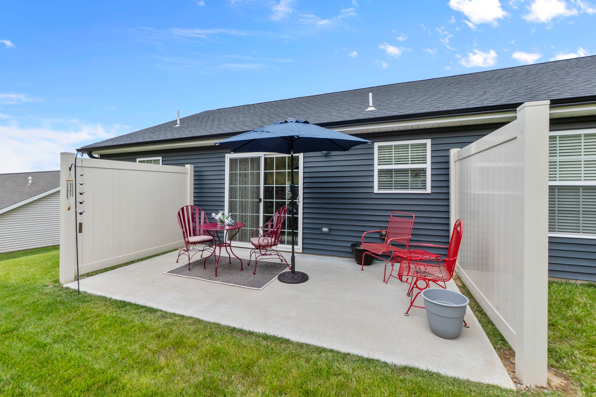 Beautifully maintained and ideally located near schools and shopping, this 3-bedroom, 2-bath home offers comfortable, open-concept living with a desirable split-bedroom floor plan. The kitchen features a spacious island, shaker-style cabinetry, and sleek granite countertops—perfect for everyday living and entertaining. Sliding doors off the dining area lead to a private patio, ideal for outdoor dining or relaxing. Plantation blinds throughout, along with an established yard and attractive landscaping, complete the picture.