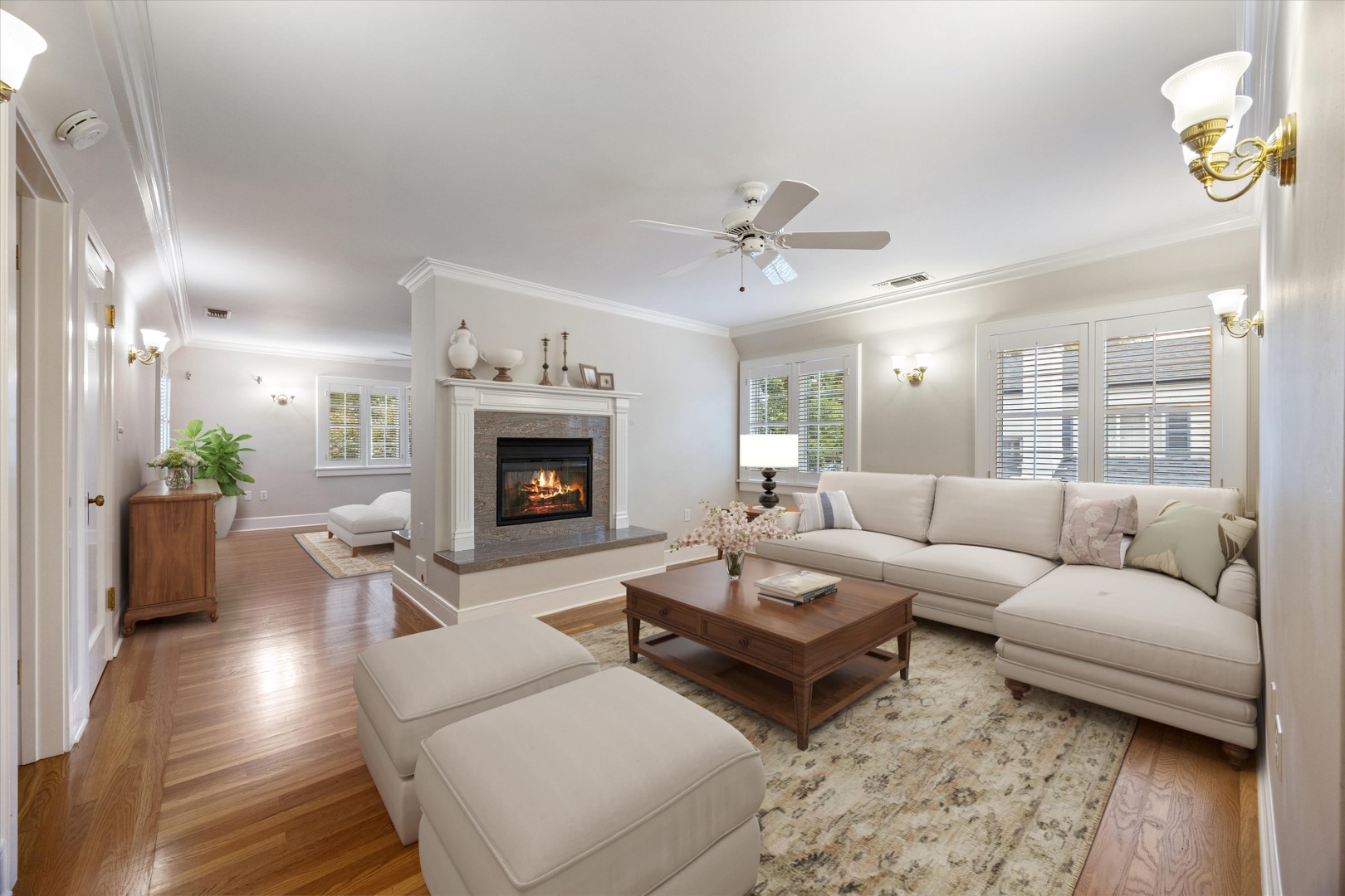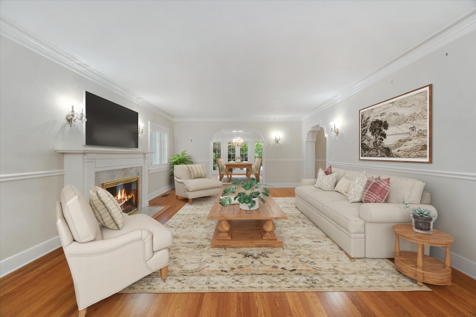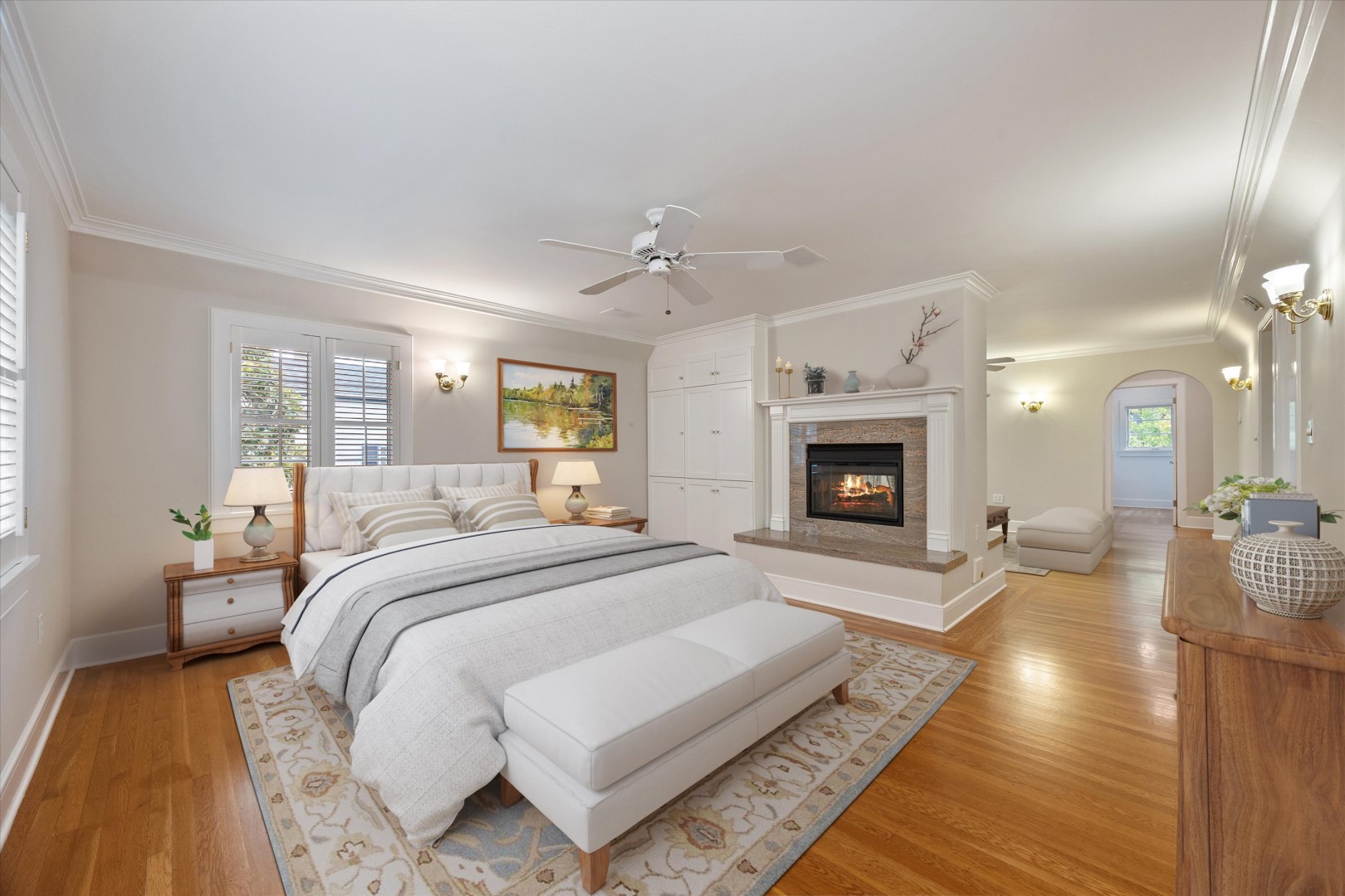 Welcome to 1020 46th Street, a stunning four bedroom, three bath brick Tudor in the core of East Sacramento, spanning approximately 3,858 square feet and showcasing exquisite craftsmanship and architectural charm. Inside, you'll find crown molding, plantation shutters, crystal sconces, a chandelier, and rich hardwood floors throughout. The formal living room features a warm fireplace, while the formal dining room is ideal for gatherings. The large kitchen caters to the chef of the home. This floor also features a bedroom and a full bathroom, making it ideal for guests. Upstairs, the primary suite provides a peaceful retreat, featuring a double-sided fireplace and a spacious sitting area, as well as two additional bedrooms and a full bathroom. French doors open to a tranquil patio and beautifully landscaped backyard, complete with lush trees and fountains. The patio leads to a studio, ideal for an office or guest quarters, featuring engineered wood floors, large windows, a full bath, and a kitchenette. Extra storage is available in the partial basement and attic. Set on a generous, approximately 0.20 acre lot in the desirable East Sacramento area, this home offers ample space for leisure and enjoyment.