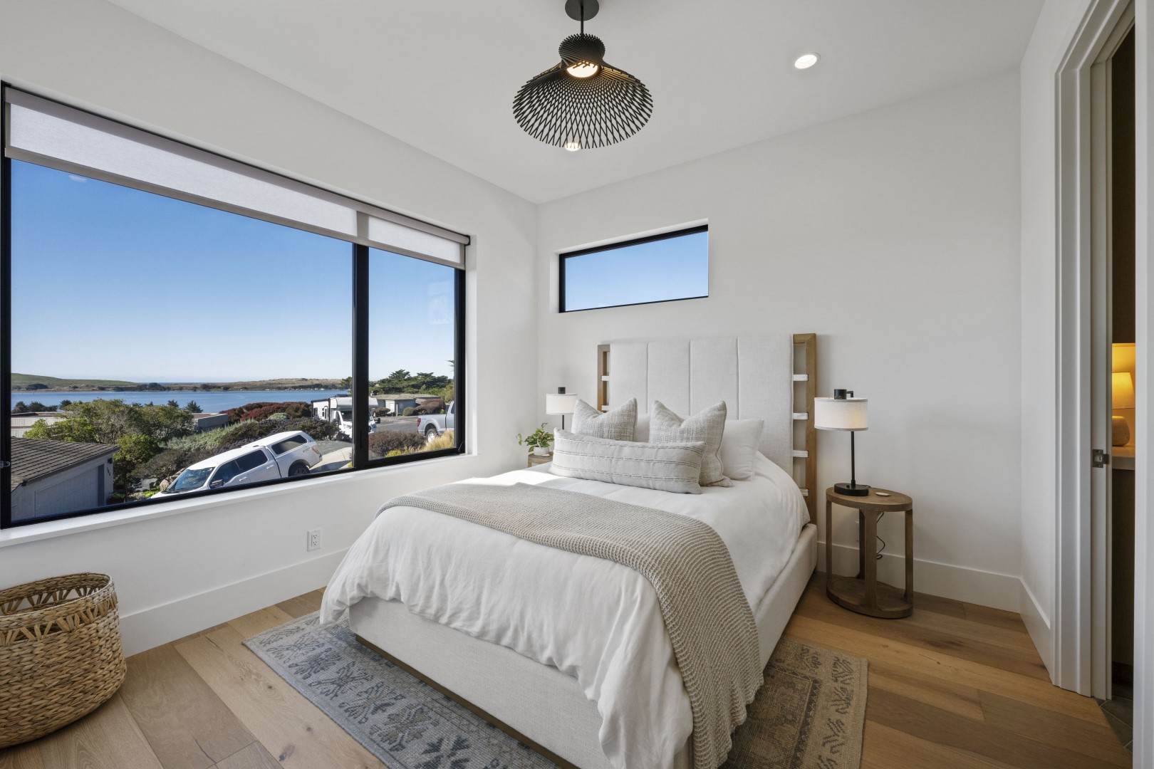 Experience coastal living in beautiful Bodega Bay with this stunning four-bed, four and one-half-bath home, offering approximately 2,804 square feet of luxurious space. Ideally situated, this residence features an open floor plan that emphasizes comfort and entertaining. The kitchen is equipped with high-end Miele appliances, a built-in fridge, quartzite countertops, and a spacious island ideal for gatherings. Natural light floods the space through Fleetwood aluminum windows, while Lutron lighting controls create the ideal ambiance. Designer furnishings enhance the home's sophistication, making it fully furnished and move-in ready. The sizable primary bedroom includes a luxurious bath with heated floors and a soaking tub for added comfort. Each additional bedroom is en suite, ensuring convenience and privacy for guests. The thoughtfully designed lower level features a family room and a flexible area that can accommodate guests, serve as a home office, or as a workout space. Constructed for durability with Hardi concrete siding, a Presidential roof, and is wired for surround sound and security cameras. An owned solar system with battery backup enhances energy efficiency. Additional features include a two-car garage with epoxy floors, a comprehensive water filtration system, and an extra-long flat driveway for ample parking.
