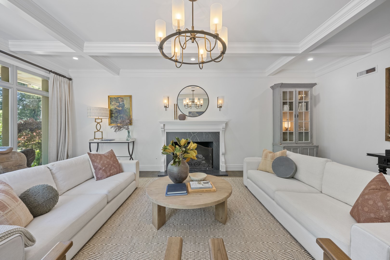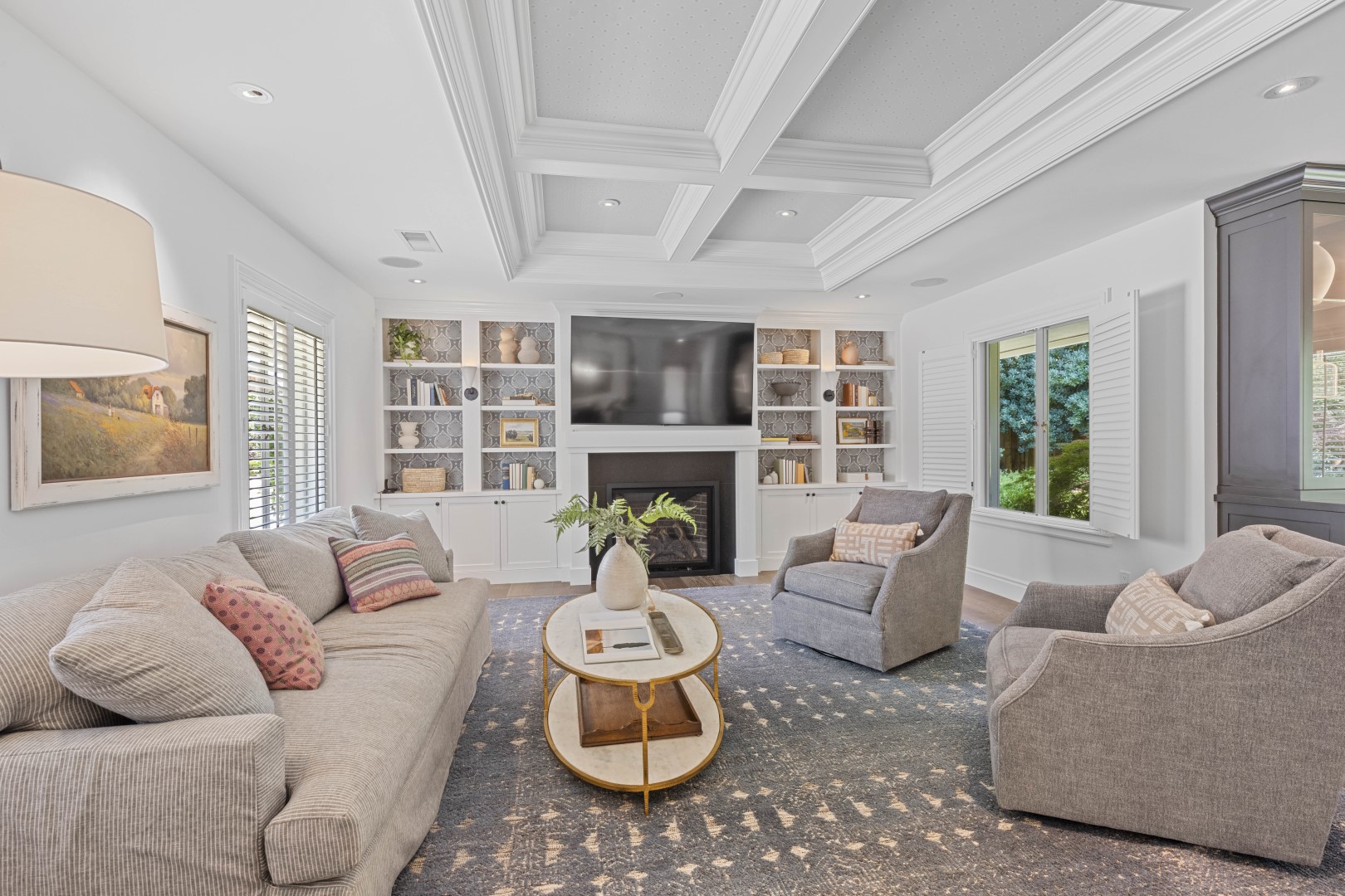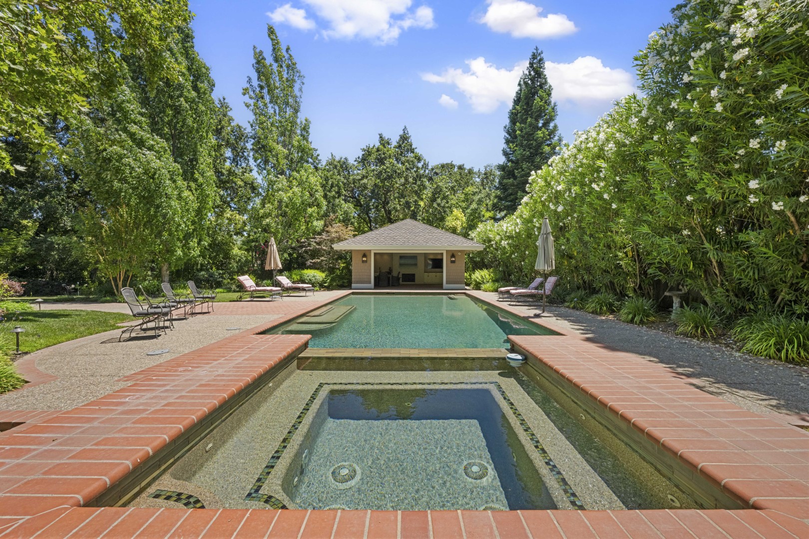 Welcome to your dream oasis at 5310 Roxbury Court in Shelfield Estates. This stunning estate spans approximately 5,166 square feet on an approximately 1.45-acre lot, beautifully blending elegance and functionality. Enter through a gated entry to find a captivating brick exterior and presidential roofing. Outdoors, enjoy impressive hardscaping, a grand fountain, a sparkling pool, jacuzzi, pergola, and two putting greens. Inside, a large floor-to-ceiling glass door opens to an airy foyer. The dining area is filled with natural light, while the gourmet kitchen features high-end Wolf appliances and a wet bar. It seamlessly flows into a cozy family room with a fireplace and box-beam ceiling. This home has four beds and three and one-half baths, highlighted by a luxurious primary suite with fireplace, outdoor access, and a spa-like bathroom with a dual-sink vanity, jetted tub, and two custom walk-in closets. A dual bathroom connects two bedrooms, while a large en-suite includes its full bath. Entertainment options include a game room, laundry room, and an unfinished basement for customization. Three HVAC systems ensure year-round comfort. ADU above the four-car garage offers additional space for guests or a home office. This property is ideal for entertaining and offers everything needed for both gatherings and everyday moments.